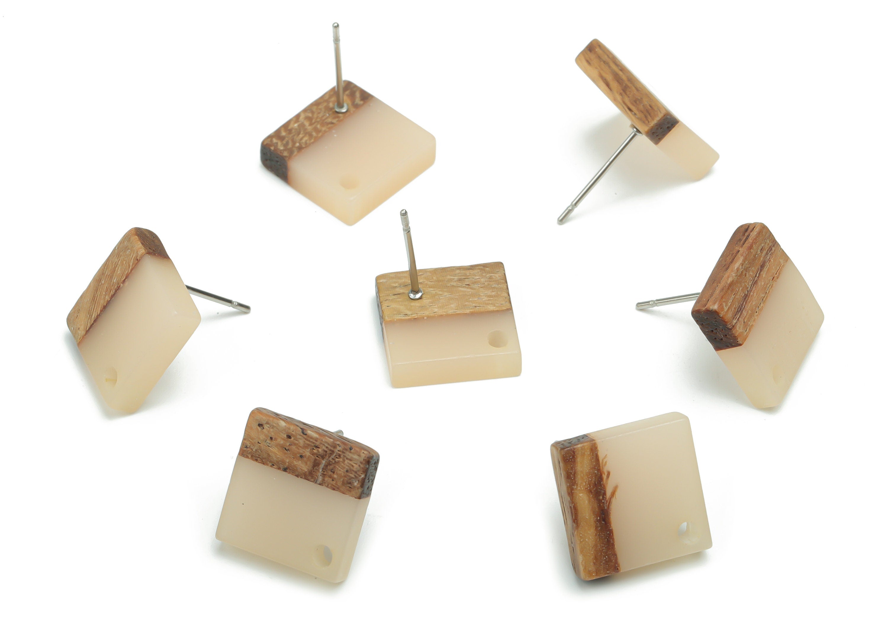 Natural Wood Square Earring Stud - Resin Square Post - 316 Surgical Stainless Steel - Jewelry Making Supplies - 11.96x11.88x3.52mm - BB1164E