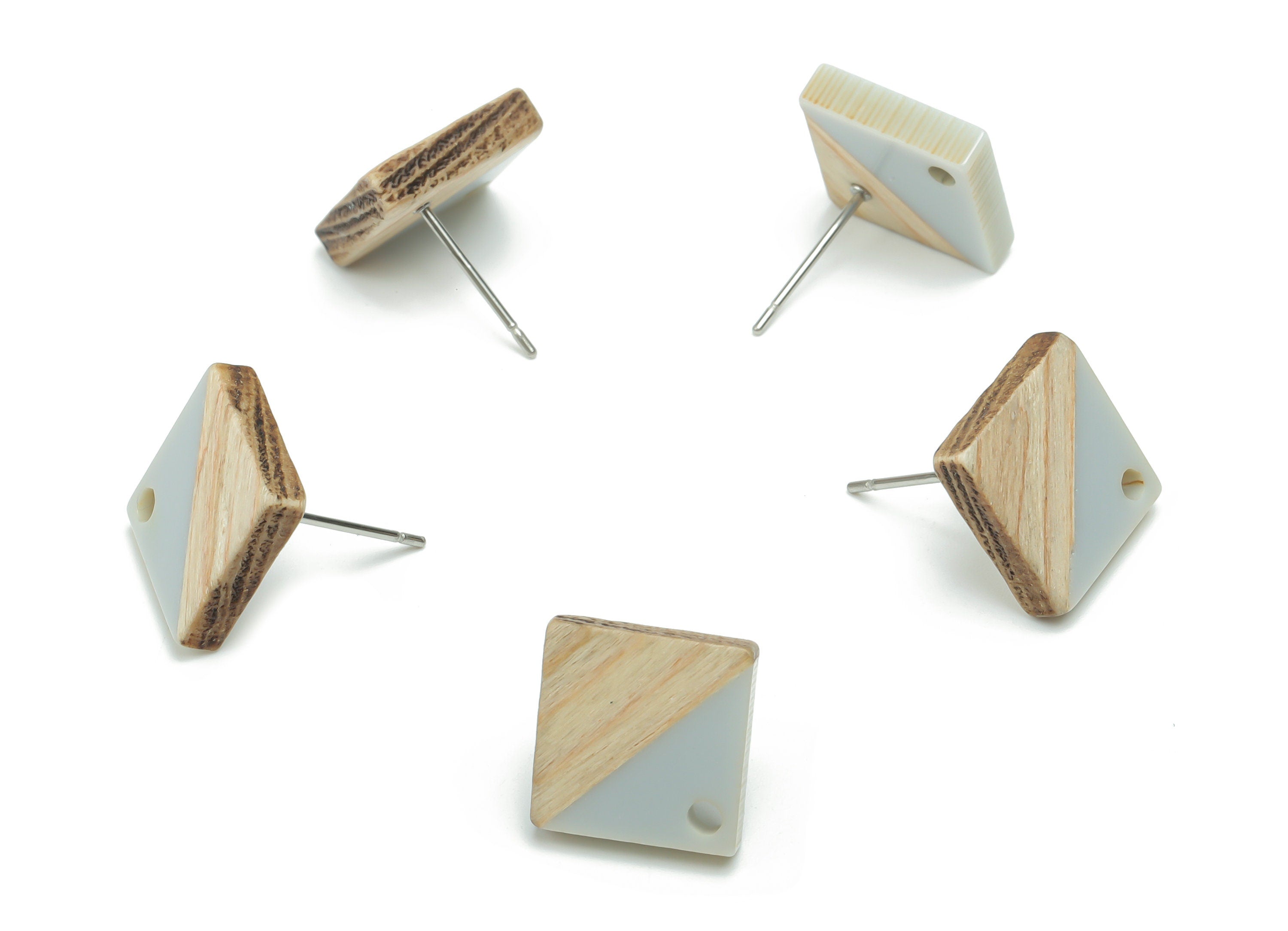 Natural Wood Square Earring Stud - Resin Square Post - 316 Surgical Stainless Steel - Jewelry Making Supplies - 11.96x11.88x3.52mm - BB1164G