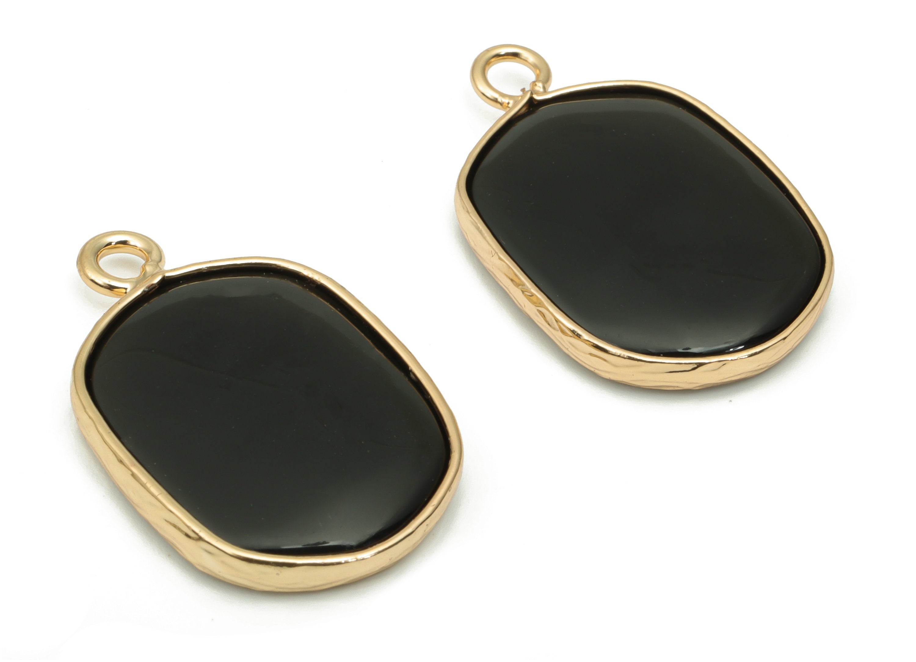 Obsidian Oval Earring Charms - Brass Oval Pendant - Natural Stone - Gold Tone Plated Brass – Jewelry Supplies - 52.2x15.92x4.11mm – NS1699B