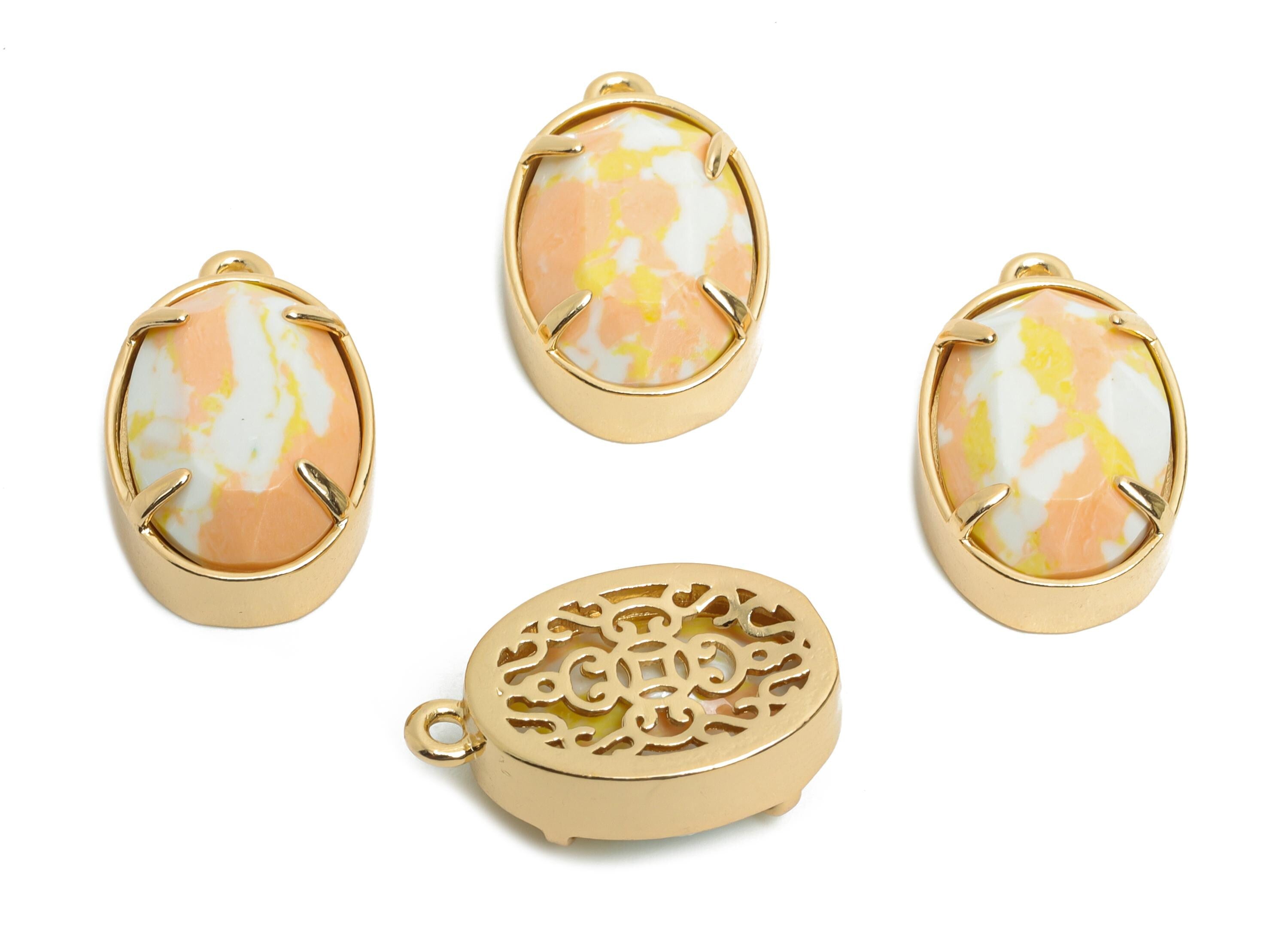 Oval Glass Pendant - Faceted Glass Pendant for Necklace - Minimalist Crystal Jewelry - KC Gold Tone Plated Brass - 18.2x11.7x6mm - GS1312