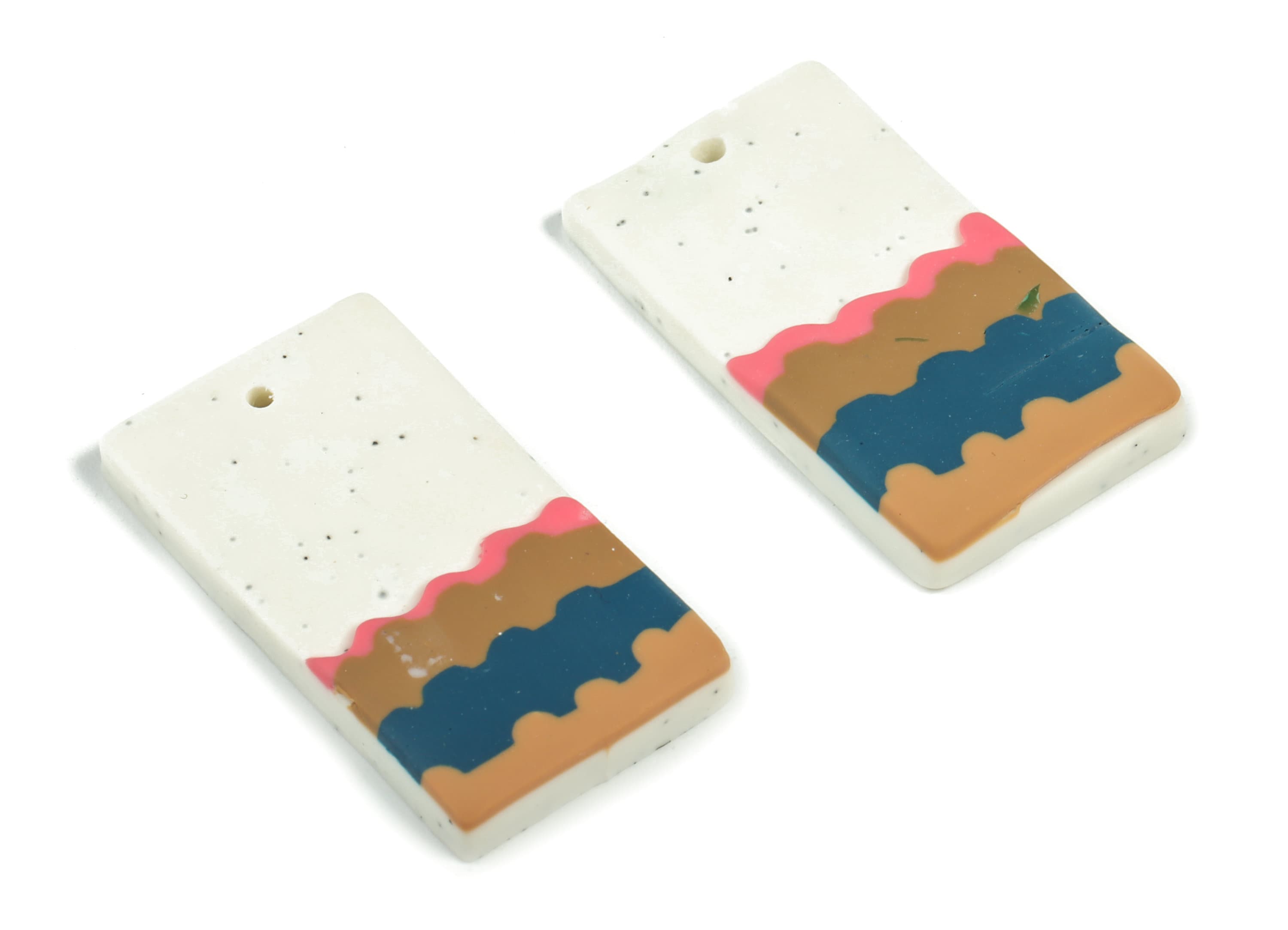 Polymer Clay Rectangle Wave Earring Charms - Polymer Clay Rectangle Pandant - Earring Findings - Jewelry Handmade - 35.4x19x4.3mm - PC2271C