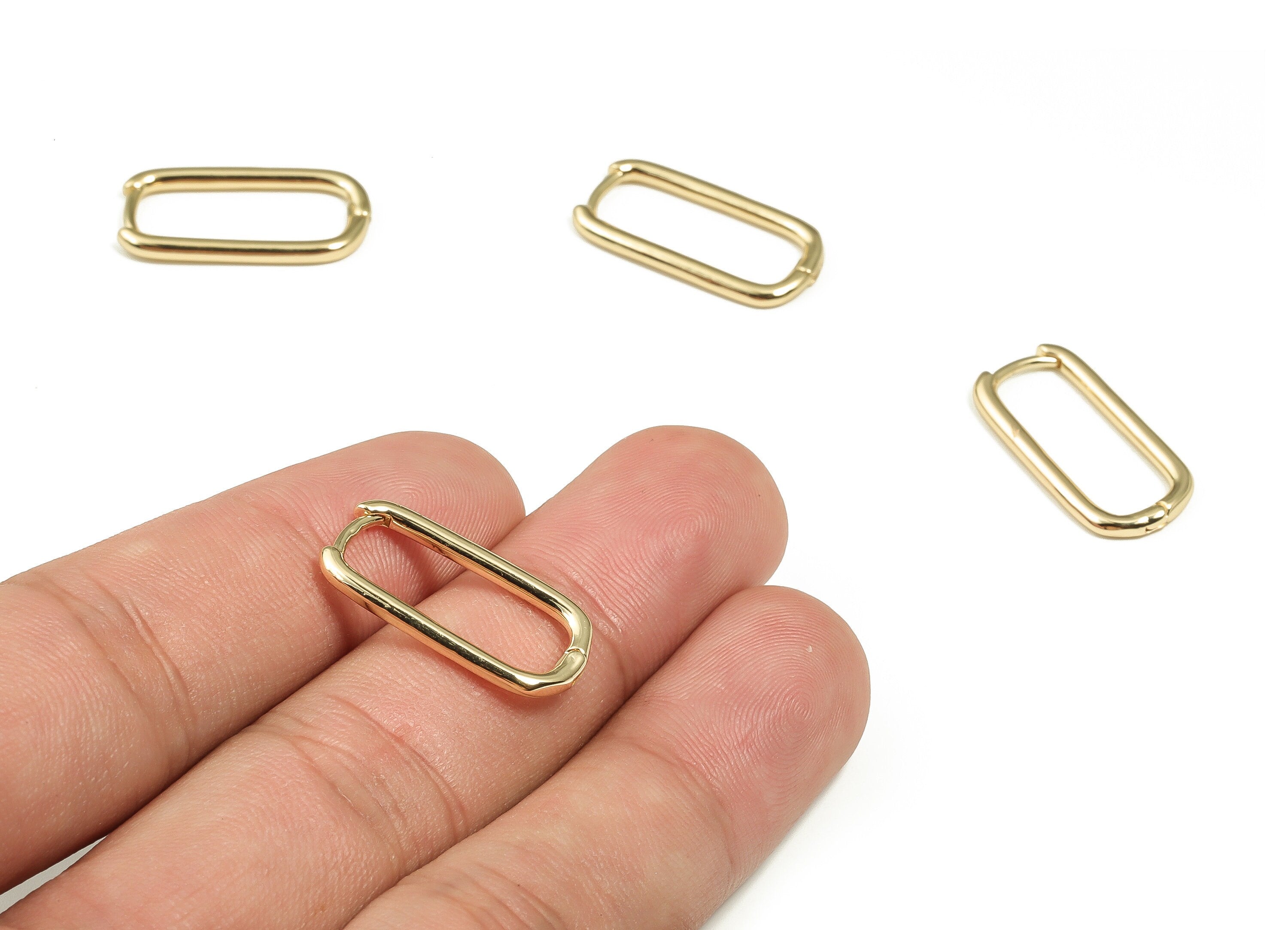 Rectangle Hoop Earrings – Small Huggie Hoops – U Shape Hoop – Minimal Earring - 18K Real Gold Plated Brass - 21.82x11.09x1.88mm - RGP3369