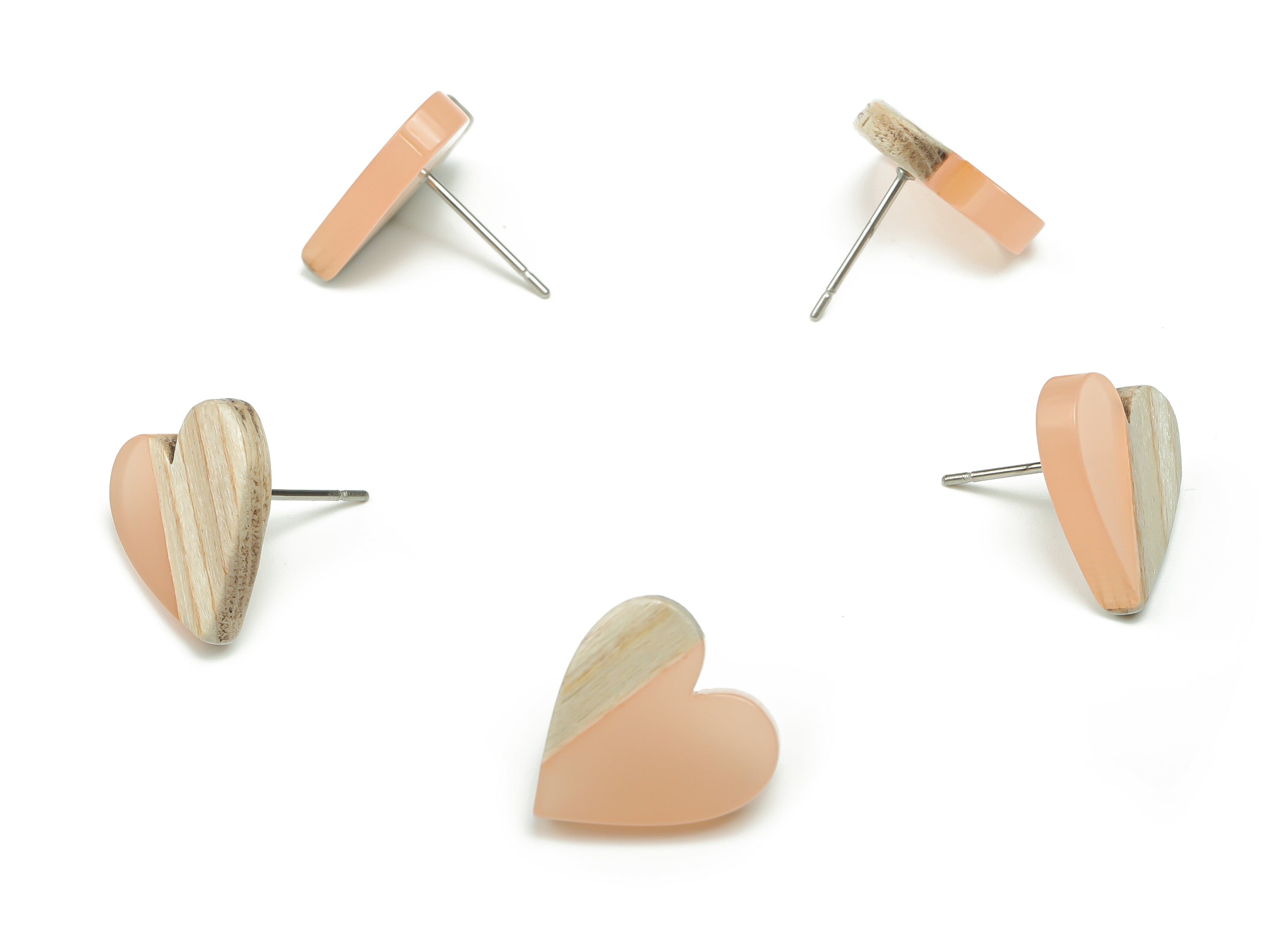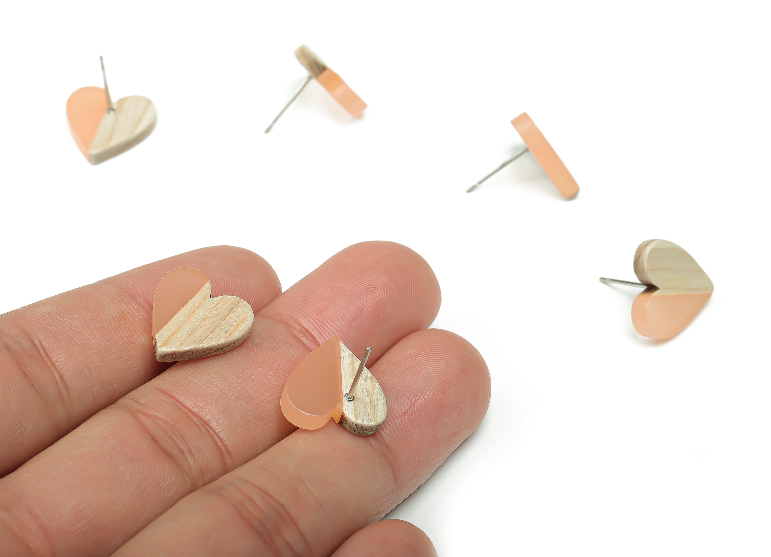 Resin Heart Earring Stud - Plain Wood Heart Post - 316 Surgical Stainless Steel Stud - Jewelry Making Supplies - 14.76x14.3x3.12mm - BB1133K