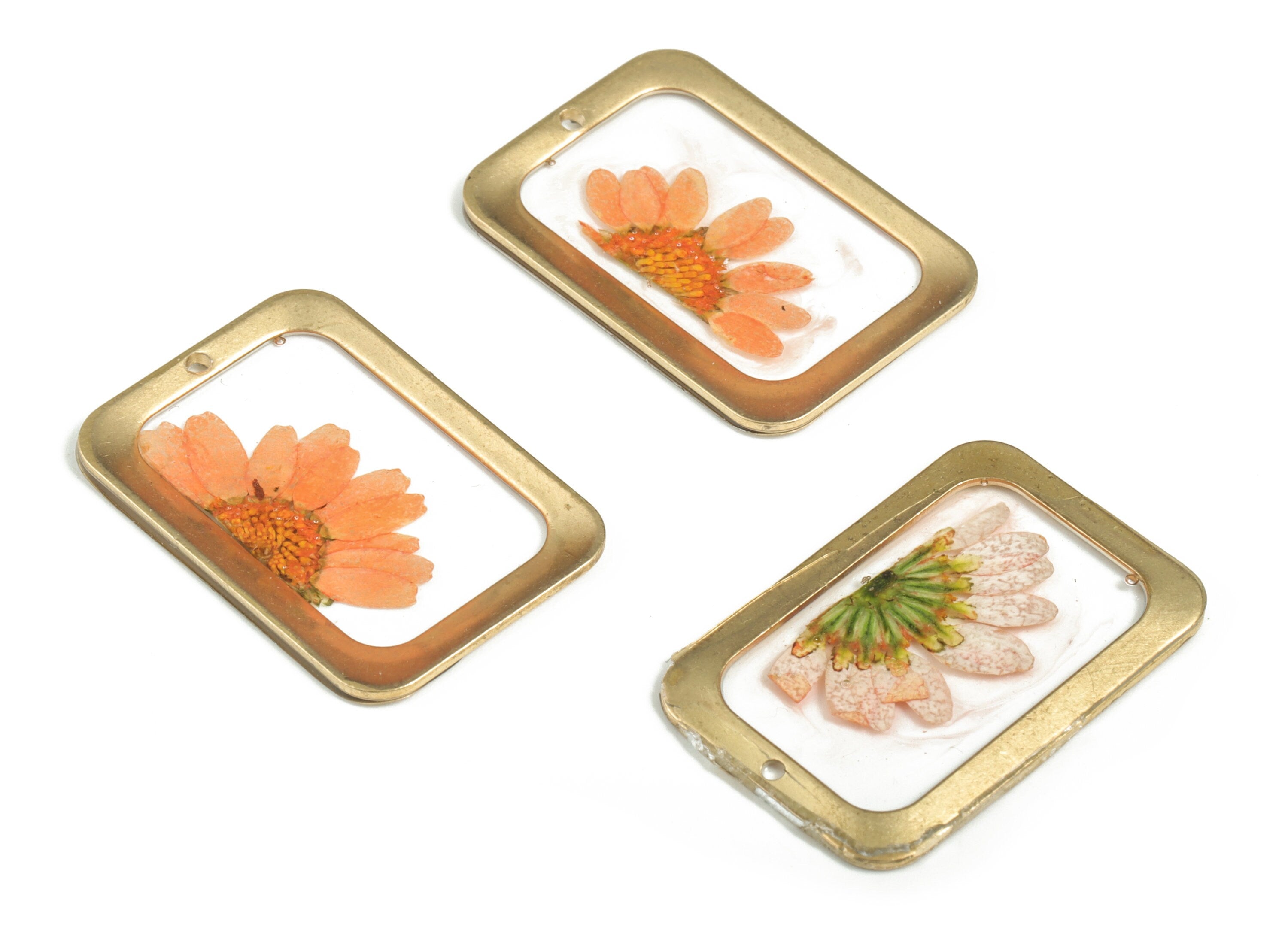 Resin Rectangle Earring Charms - Resin Real Flower Pendant - Raw Brass – Floral Resin Jewelry Charm - 30.13x20.58x1.66mm - RC1153