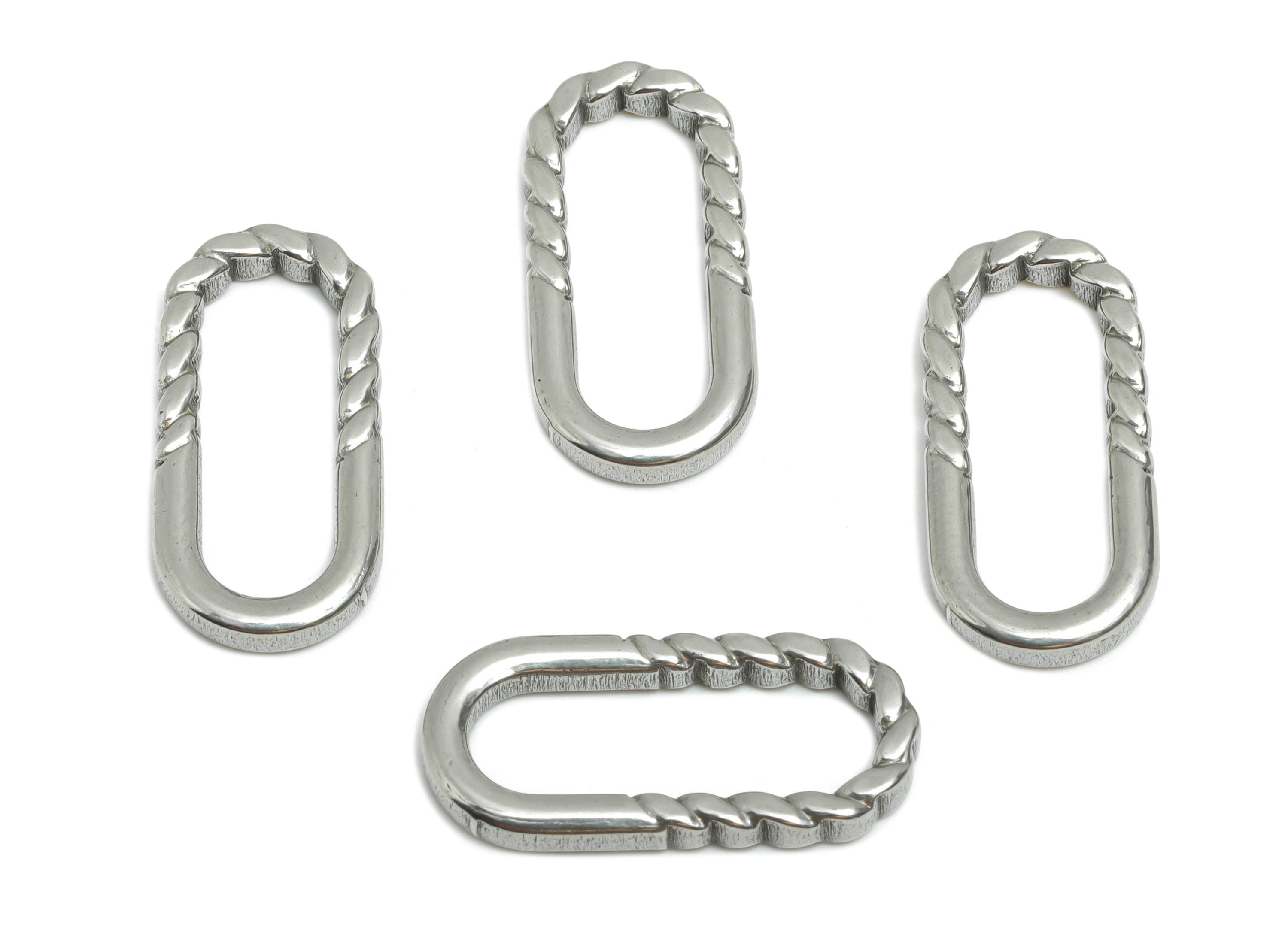 Rope Link Rectangular Pendant - Steel Textured Chain Connector - Chunky Twisted Minimalist Stainless Steel Jewelry - 21x10x2.29mm - SS1932