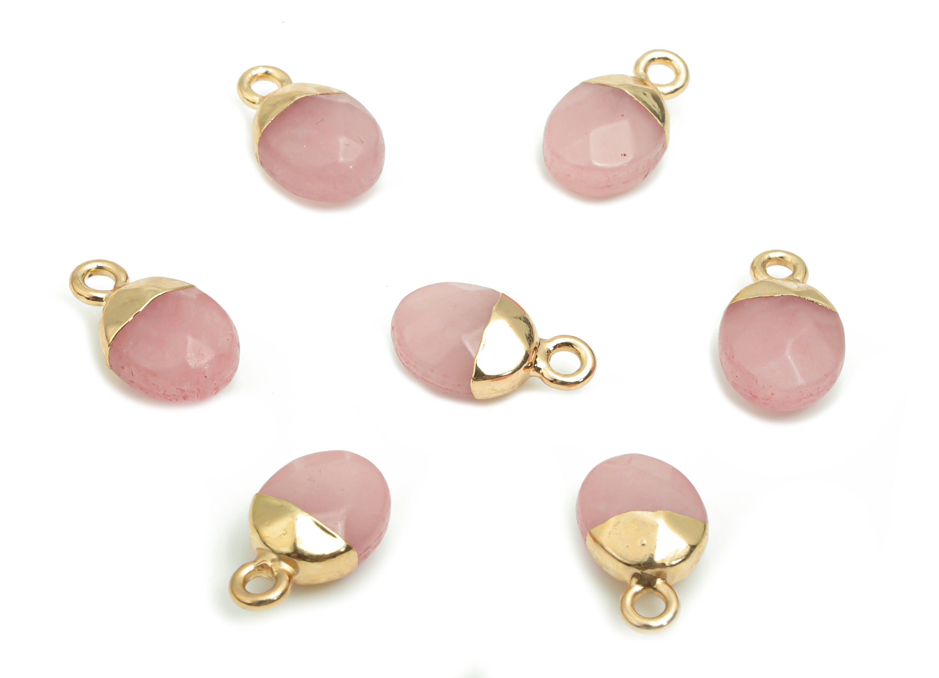 Rose Quartz Mini Round Earring Charms - Brass Circle Pendant - Iron Loop - Natural Stone - Gold Tone Plated Brass – 13.5x8.1x5.3mm – NS1577A
