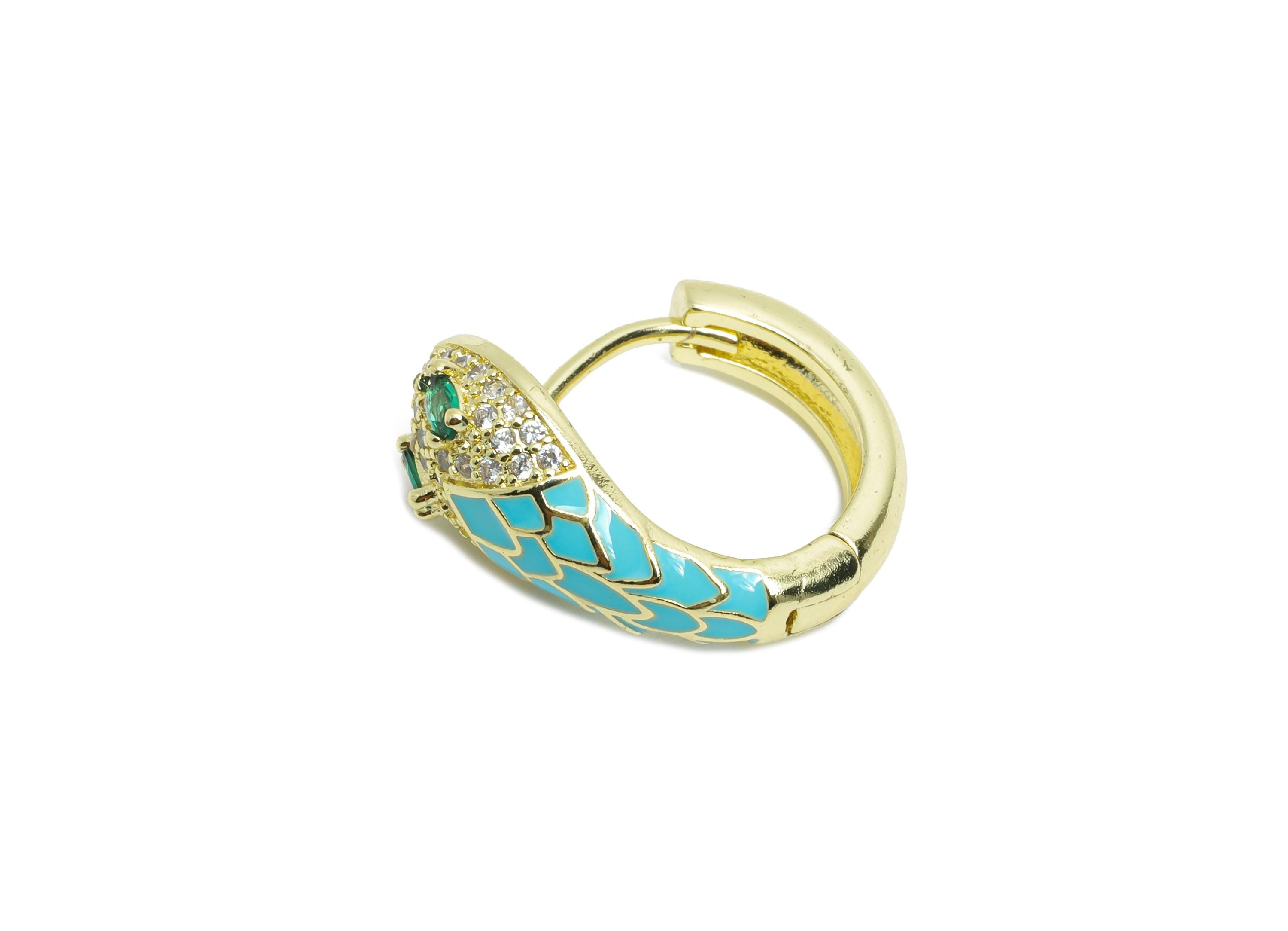 Snake Hoop Earring - Brass Blue Enamel Huggie Hoop - Cubic Zircon Dainty Animal Hoop Earrings - 18K Real Gold Plating - 18x15x7mm - RGP9712