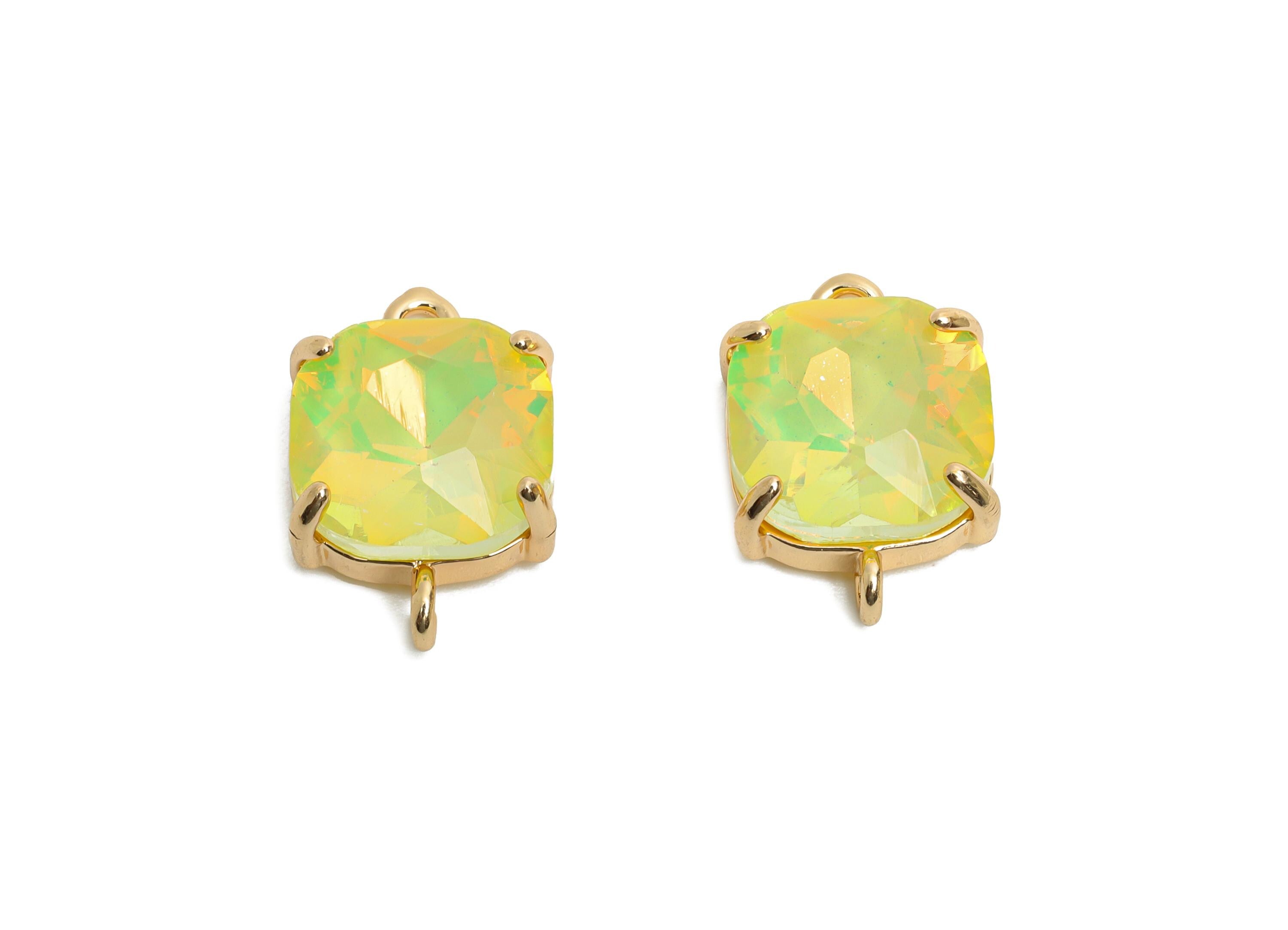 Square Crystal Bracelet Connectors - Dainty Brass Glass Charm - Sparkling Square Connector - KC Gold Tone Plated