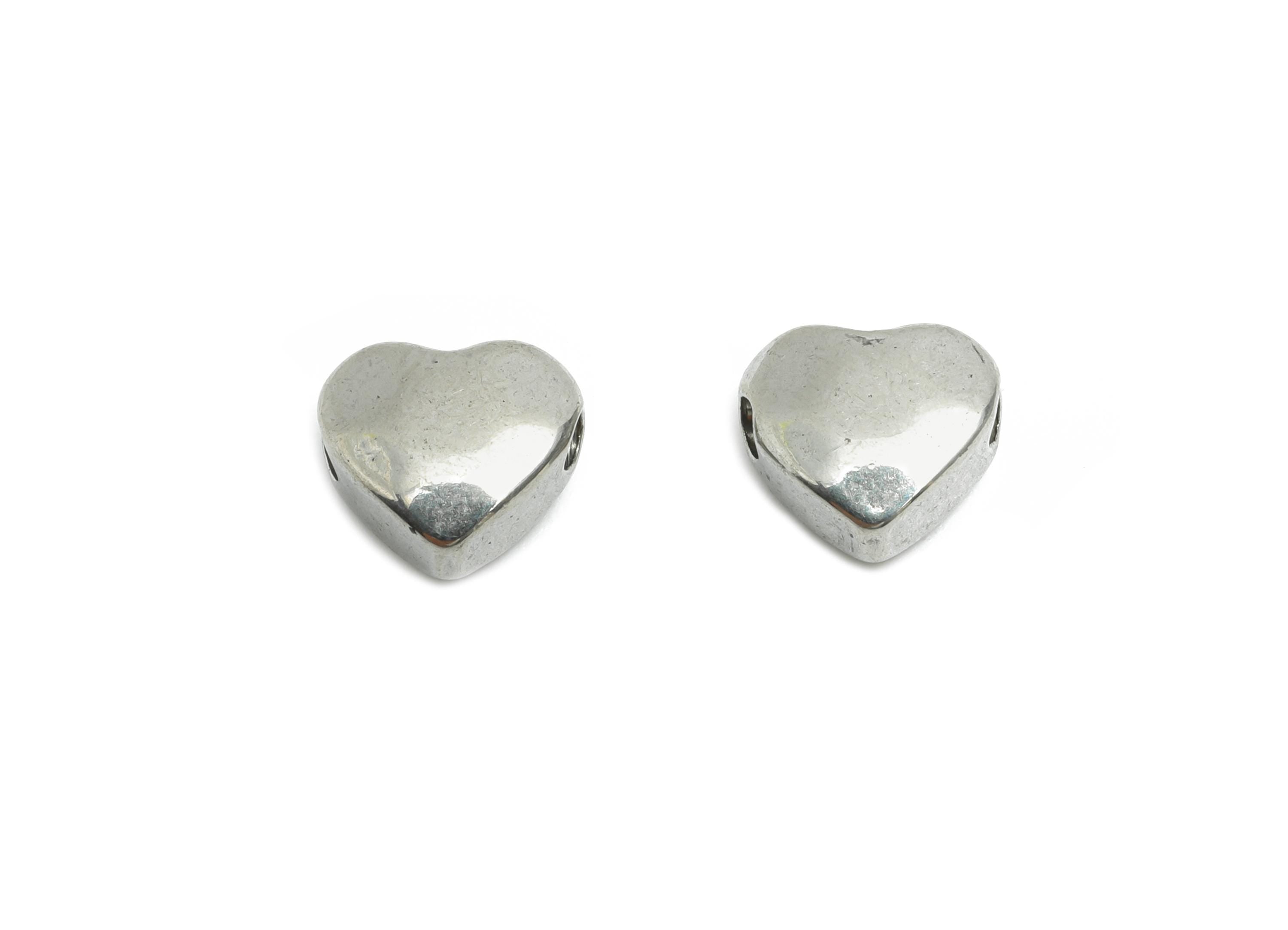 Stainless Steel Heart Bead - Smooth Silver Heart Bracelet Bead - Romantic Heart Jewelry - Minimalist Steel Accent