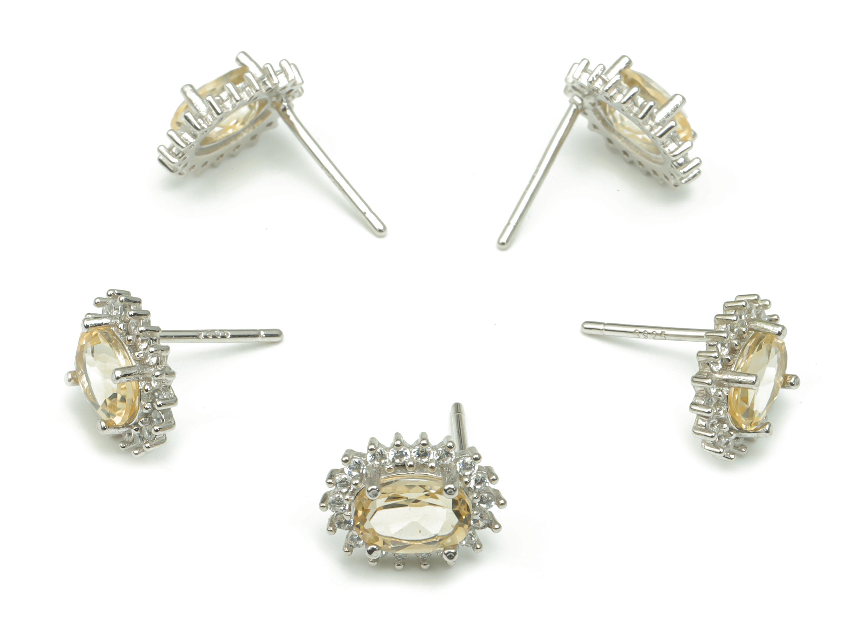 Sterling Silver Citrine Stud Earrings - Zircon Oval Natural Stone Post - 925 Silver Earrings - Minimalist Style – 11.1x8.9x3.6mm – SI1006B