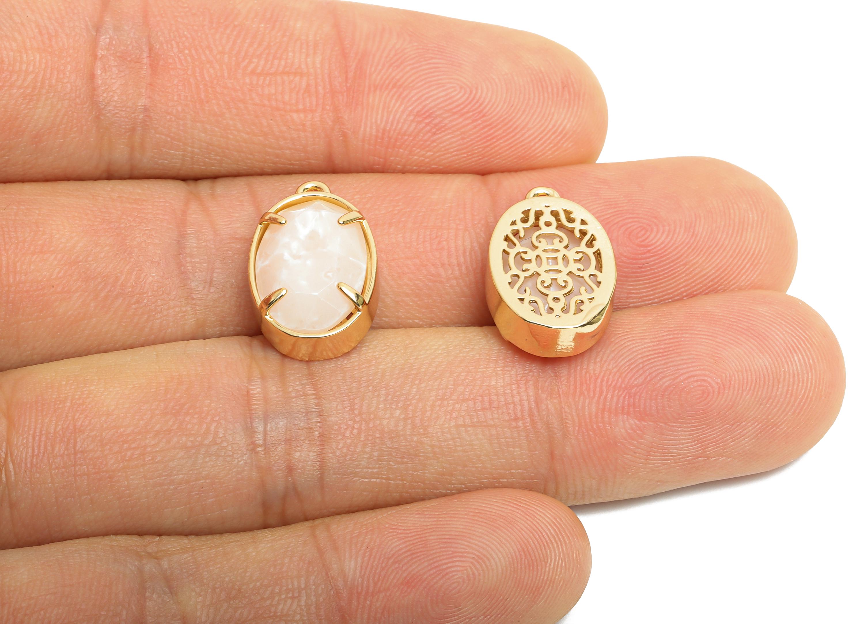 White Oval Glass Pendant - Faceted Glass Pendant for Necklace - Refined Crystal Jewelry - KC Gold Tone Plated Brass - 18x11.7x6mm - GS1310