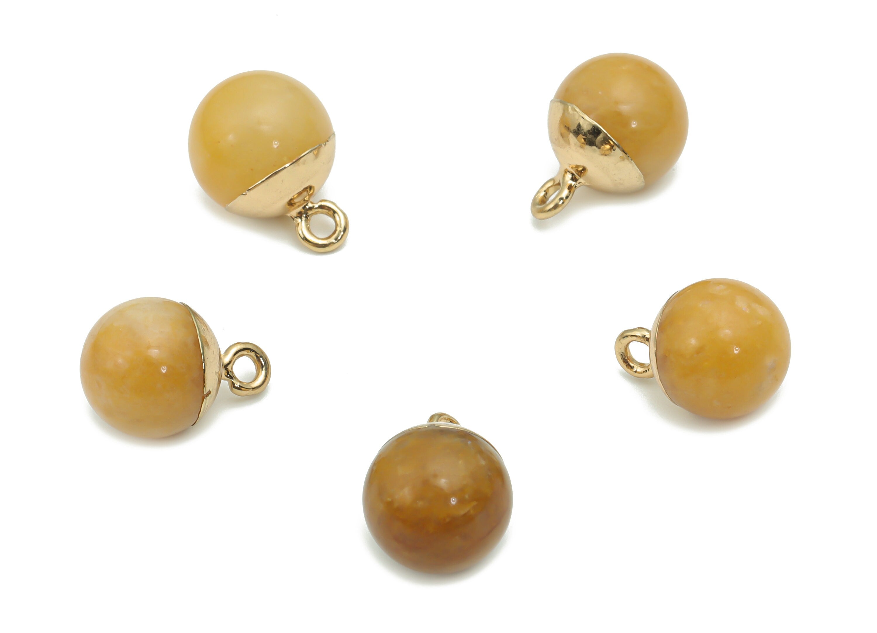 Yellow Dyed Adventurine Ball Beads Charms - Brass Beads Pendant - Iron Loop - Natural Stone - Gold Tone Plated – 14.58x10.8x10.8mm – NS1578F