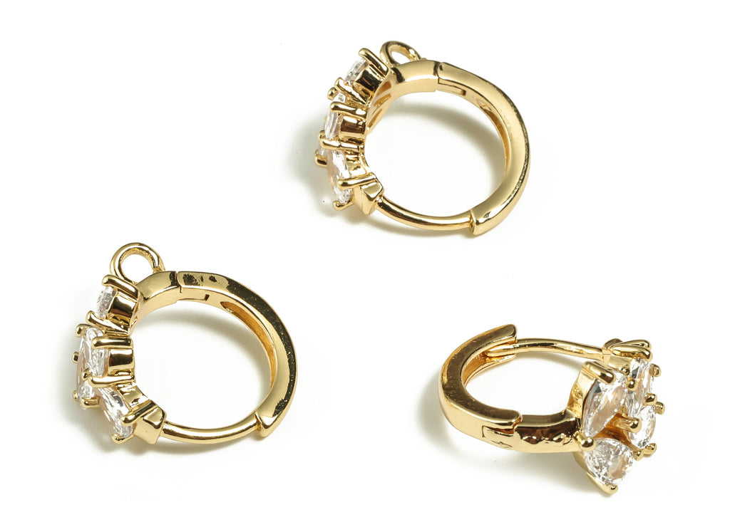 Brass Huggies Hoop Earrings - Hoop Earring with Loop - Earring Stud with Zircons – 18k Gold Plated Brass - 16.09×14.98×3.47mm - RGP3291
