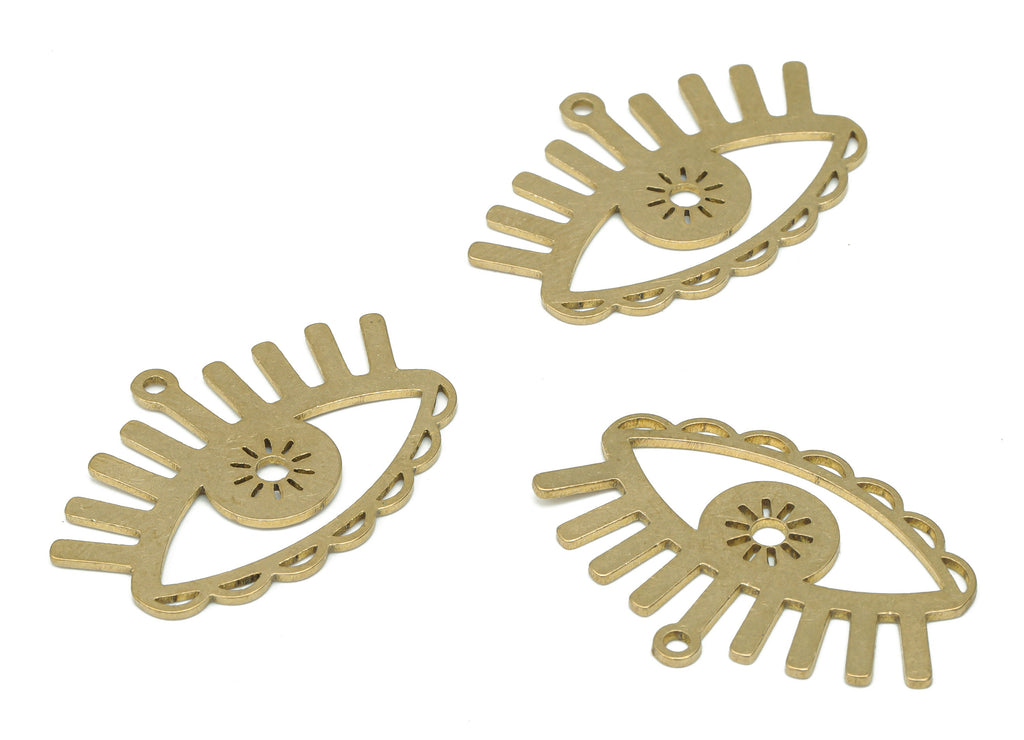Brass Sun Eye Earring Charms - Raw Brass Eyelash Pendant - DIY Jewelry Making Supplies - 29.73x20.71x0.75mm - PPA3198